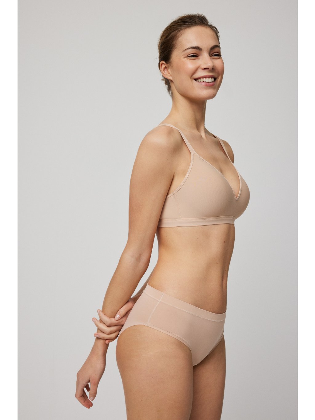 Bezkosticová podprsenka Ysabel Mora v béžovej farbe ponúka maximálne pohodlie a elegantný minimalistický vzhľad. Hladké košíky tvarujú poprsie prirodzene a zostávajú neviditeľné pod oblečením.