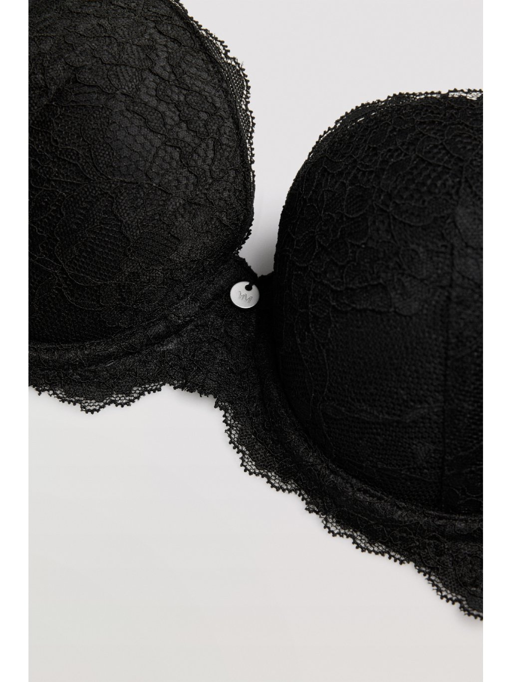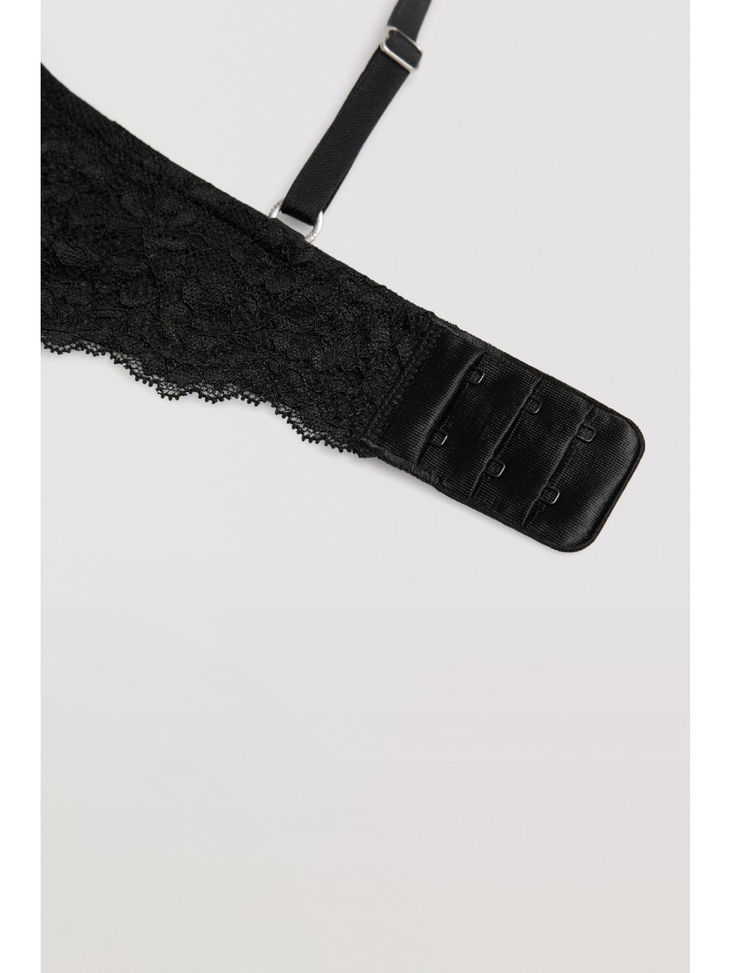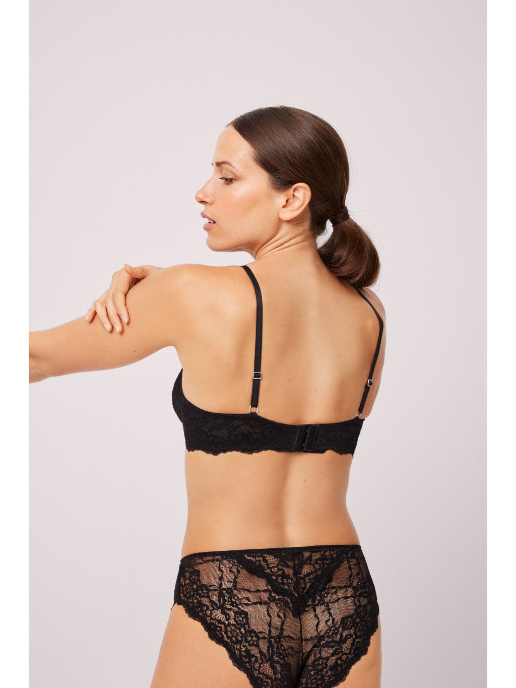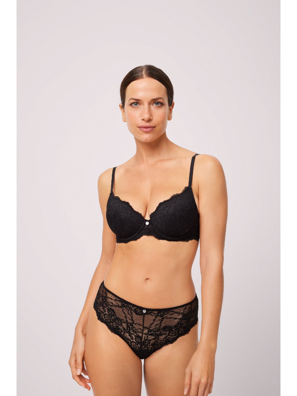 Čierna krajková podprsenka Ysabel Mora spája ženskosť, komfort a nadčasovú eleganciu. Jemná kvetinová krajka dodáva zmyselný vzhľad, zatiaľ čo kostice a ľahké vystuženie tvarujú poprsie a poskytujú prirodzenú oporu.